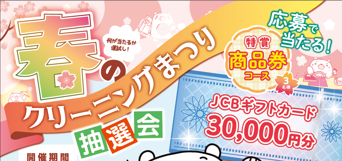 クリーニングまつりWebアンケート 上記のWebアンケートに答えてプレゼントを当てよう! 今年も恒例の「春のク …
